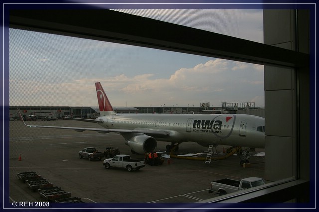 An der Waage heißt es dann drei Mal umpacken bis jeweils die Gepäckstücke bei 51 bzw. unter 50 lbs sind. Dann wird noch ein wenig die Zeit vertrieben bis es durch die Sicherheitskontrolle zum Gate geht. Dann geht es an Bord und pünktlich nach Detroit.